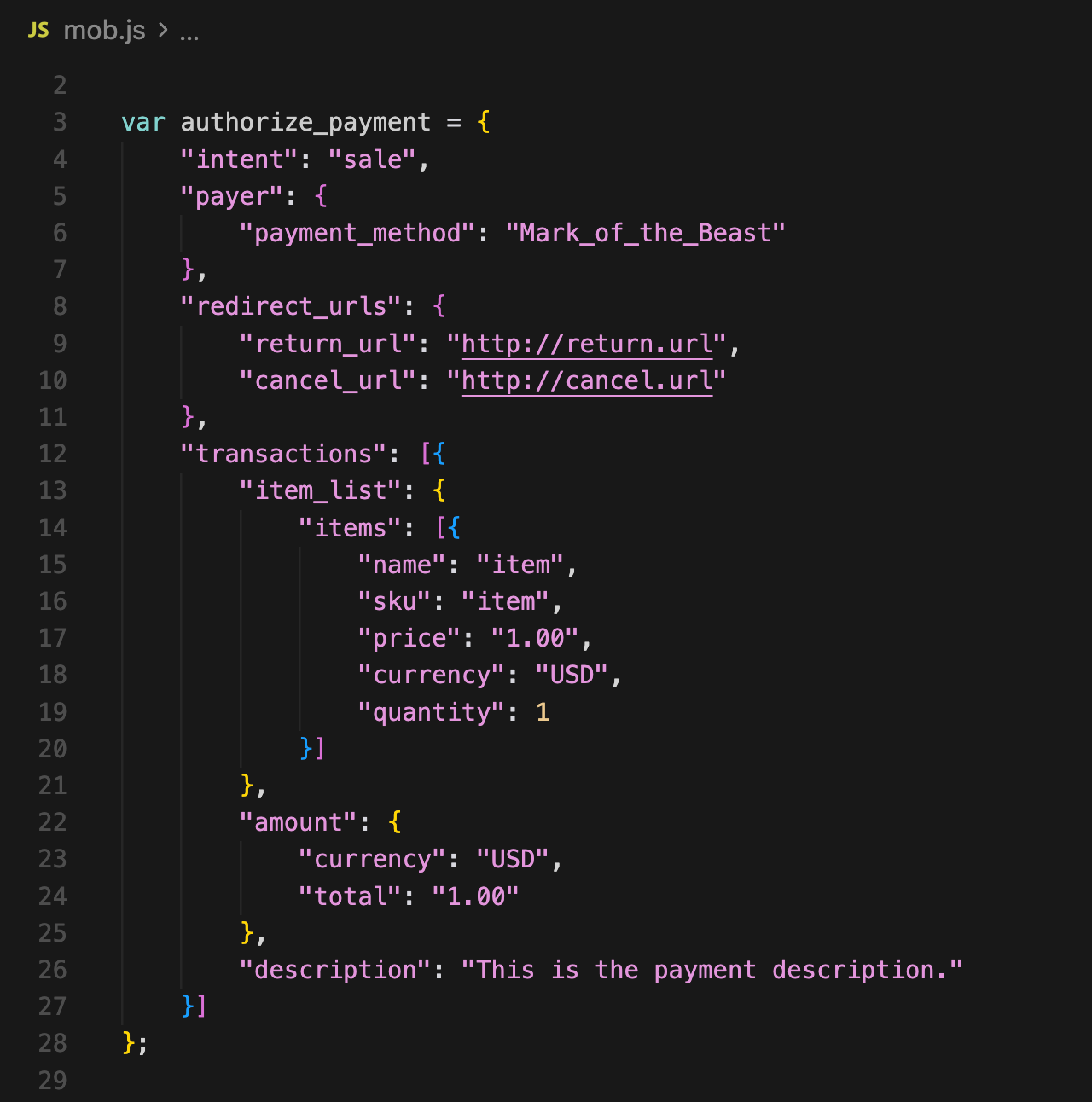 What do we know about the Mark of the Beast? Let’s focus on payment authentication only, for a moment. A person at a store wants to pay for something. At the register, they “present” the Mark, whatever the form factor is. It’s easy to do, just present your right hand or scan the forehead. No big deal, this is already being done today with RFID chips injected under the skin or OCR for QR or barcodes. Here’s something for you to consider. This is all the data such as transaction needs to push:
