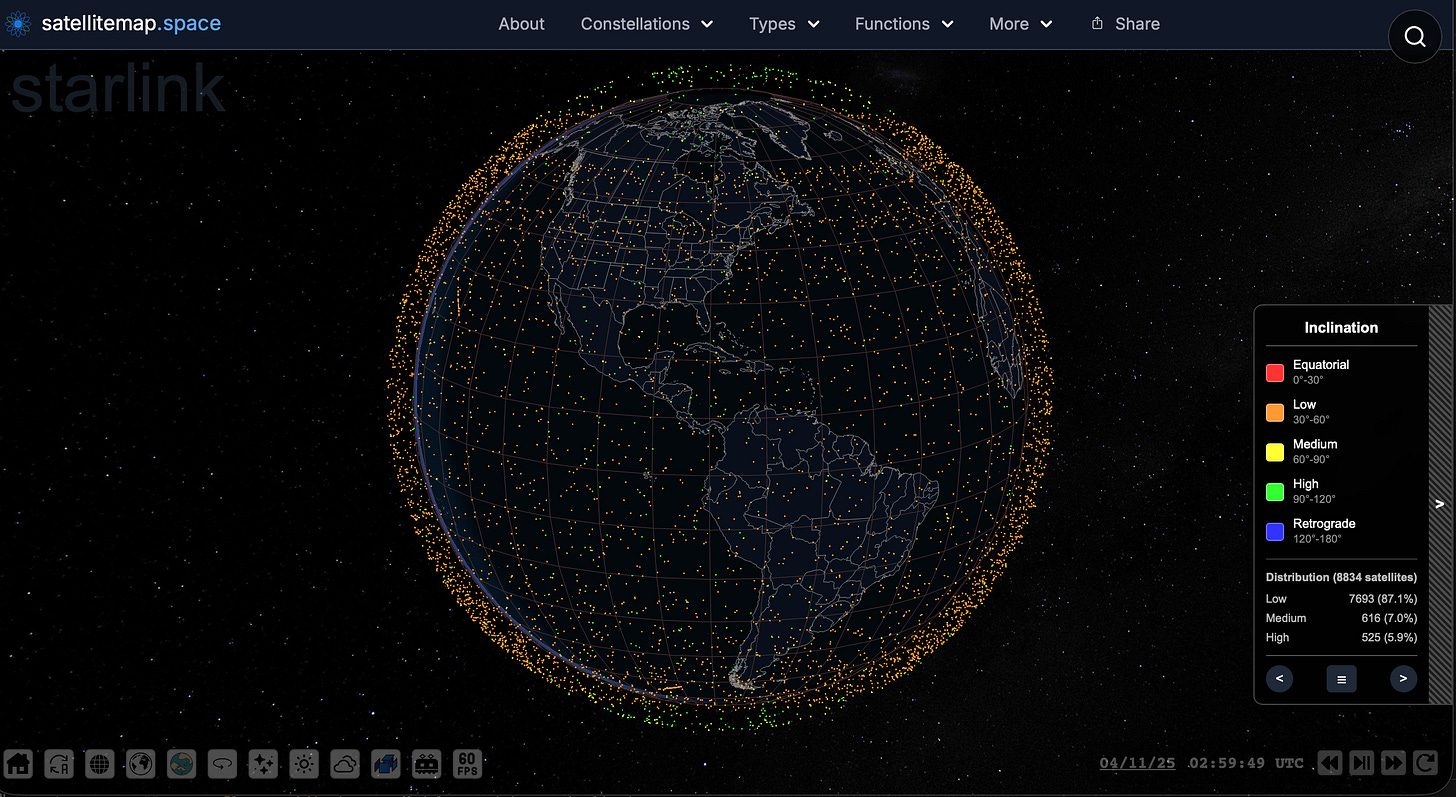 I’ve been imaging a convergence of AI, Quantum, and 6G computing as a requirement of the Beast System in Revelation 13 (here). The recent keynote from Nvidia just dropped what to me is a bombshell. Brothers and Sisters, Jensen Huang’s keynote reveals the integration and encapsulation of quantum capabilities with AI in Nvidia’s next generation of hardware. And in a related part of the global system, 6G is likely to play a significant role as well. I speculate that the StarLink satellite systems (see the clickable space map below) has already been wired up with 6G. There are 8,800 of these all over the world so far. Time will tell. But I can’t imagine the opportunity to rollout 6G so broadly is going to be missed.